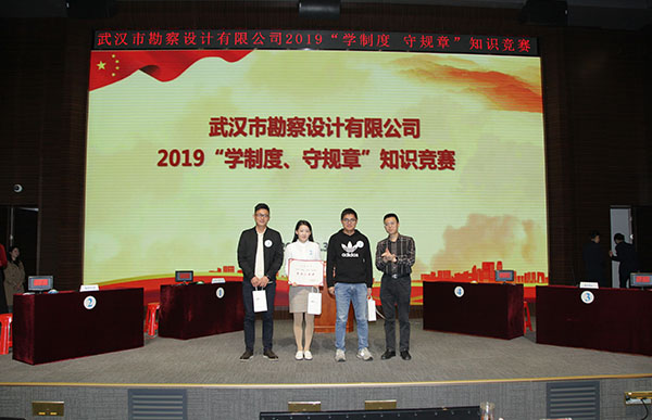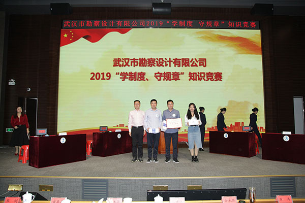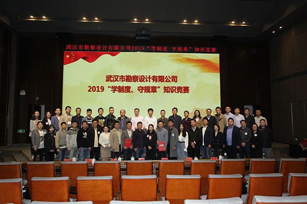 為進(jìn)一步加強(qiáng)員工對(duì)公司企業(yè)文化及各項(xiàng)規(guī)章制度的學(xué)習(xí)和認(rèn)識(shí),提高員工的綜合素養(yǎng),10月30日上午,公司首次舉辦的2019年度“學(xué)制度 守規(guī)章”知識(shí)競(jìng)賽活動(dòng)在測(cè)繪院307學(xué)術(shù)報(bào)告廳成功舉辦。公司董事長(zhǎng)廖建生,總經(jīng)理施木俊,副總經(jīng)理安永強(qiáng)、官善友、蔣濤,代理副總經(jīng)理熊劍,代理總會(huì)計(jì)師龔瑋親臨現(xiàn)場(chǎng)指導(dǎo)并觀看了比賽,公司各部門(mén)負(fù)責(zé)人及員工代表共計(jì)100余人參加了活動(dòng)。巖土工程一公司、巖土工程二公司、測(cè)繪工程公司、基礎(chǔ)工程公司、檢測(cè)監(jiān)測(cè)公司、設(shè)計(jì)中心、地質(zhì)環(huán)境中心、不動(dòng)產(chǎn)咨詢中心、東湖分公司、新區(qū)分公司、臨空分公司、土工試驗(yàn)室等12支生產(chǎn)部門(mén)代表隊(duì)共36名選手參加了此次比賽。