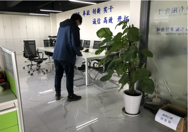 臨空分公司組織人員在復(fù)工前一天對(duì)辦公室、宿舍、生產(chǎn)車(chē)輛等進(jìn)行了徹底消殺,并為員工準(zhǔn)備了口罩、酒精、消毒水、防護(hù)服等防疫物品。為了保證員工的個(gè)人生命安全,做到每人每日測(cè)量體溫并做好記錄,嚴(yán)格按照要求佩戴口罩;免洗消毒液隨身攜帶隨時(shí)隨地消毒;訂購(gòu)分餐盒飯,一人一桌單獨(dú)用餐;按值班表每日專(zhuān)人對(duì)工作區(qū)域進(jìn)行消毒。