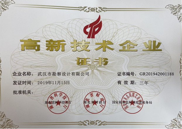 2020年7月8日,我司國家高新技術(shù)企業(yè)再認證申報材料順利通過湖北省科學技術(shù)廳、湖北省財政局和國家稅務總局湖北省稅務局最終審核,再次取得了國家高新技術(shù)企業(yè)證書,為我司今后能夠順利承接各類建設工程項目提供了有力的保障。
