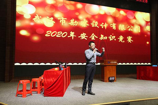 為進(jìn)一步增強(qiáng)公司廣大員工的安全意識(shí),按照武漢城建集團(tuán)《安全生產(chǎn)專(zhuān)項(xiàng)整治三年行動(dòng)方案》要求,結(jié)合公司“安全生產(chǎn)強(qiáng)化年”活動(dòng)部署,11月30日下午,公司在測(cè)繪院307學(xué)術(shù)報(bào)告廳舉辦2020年度“安全伴我行、知識(shí)在我心”安全知識(shí)競(jìng)賽。公司各生產(chǎn)部門(mén)積極組織員工參賽,本次競(jìng)賽共有36名選手組成12支參賽隊(duì)伍參加了此次知識(shí)競(jìng)賽。各部門(mén)負(fù)責(zé)人及員工代表共計(jì)100余人參加了此次活動(dòng),公司總經(jīng)理施木俊、副總經(jīng)理兼總工程師官善友親臨比賽現(xiàn)場(chǎng)觀看比賽。