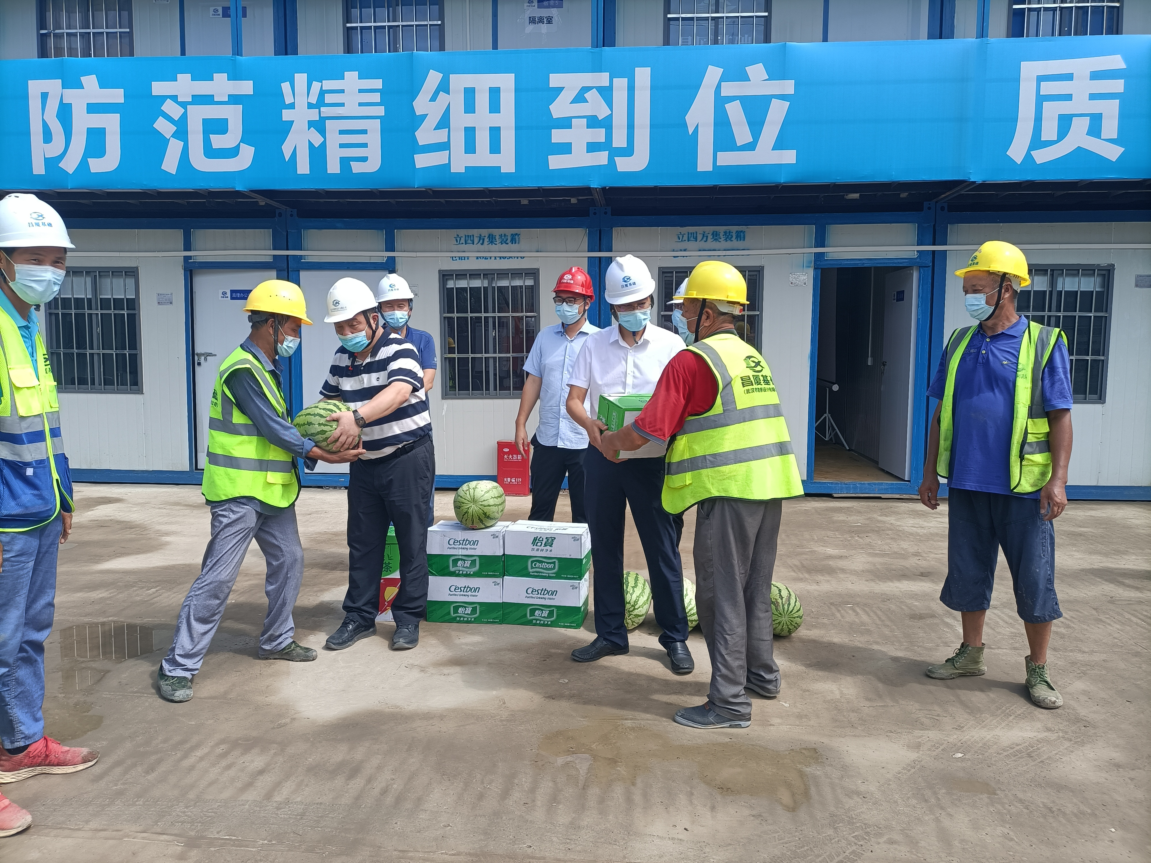 同時,公司領(lǐng)導(dǎo)在項目現(xiàn)場開展了送清涼活動,為一線人員送上礦泉水、西瓜、花露水、藿香正氣水等防暑降溫物資及個人防護用品,并叮囑在高溫堅守崗位的一線職工要注意勞逸結(jié)合,做好疫情個人防護,消除各類安全隱患,確保夏季安全生產(chǎn)。(綜合部(黨群工作部)