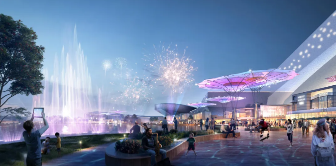 項目規劃用地約1.1萬畝,打造“一核兩軸四片區”的空間格局:項目“一核”圍繞湖面,布局多元文旅業態,其中包括約9萬方的全球最大冰雪娛樂綜合體,約2萬方的水娛樂綜合體,約30萬方的酒店康養民宿群以及集萃黃陂人文的特色水鎮商街;“兩軸”將建設文旅發展軸和生態文化軸;“四片區”即以水系為主線,形成濱河文化、體育樂活、田園休閑、生態休養四大片區,為游客提供全天候、全季節、全齡段、全業態的文化旅游服務。