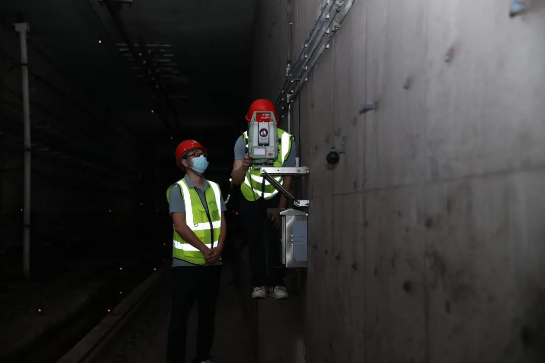 為保證6號線的安全運營,及時了解地鐵線路周邊項目施工引起的隧道結構變形情況,待到凌晨地鐵停運后,項目部人員連續奮戰了數十個夜晚,將自動化監測儀器設備安裝到地鐵隧道中,確保地下的平穩如常。