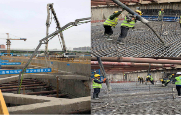 2019年4月26日下午,伴隨著最后一方混凝土振搗密實,漢口國際濱江商務區地下環路首塊底板順利澆筑成功。此次底板澆筑成功標志著地下環路基坑工程順利開挖到底并進入主體結構施工階段。