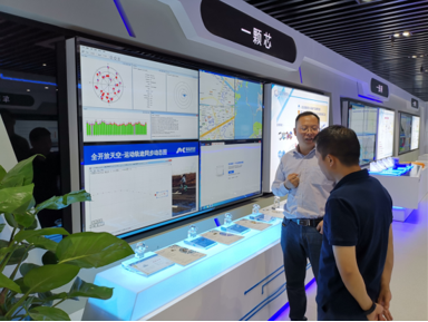 在總經理王波、副總經理華中雄等人的陪同下,測繪公司一行人參觀了北斗產業創新中心。王波總經理從軟件平臺、數據研發、行業應用、運營服務等方面對北斗產業的發展與應用情況進行了詳細介紹,并表示湖北地信集團致力于積極推動北斗和其他領域的融合發展,形成了初具規模的產業鏈,充分基于衛星定位、云計算、物聯網等新技術,開拓了政務、民生、產業三大類十余項的智慧應用,已逐漸深入到城市建設和管理的各個領域。
